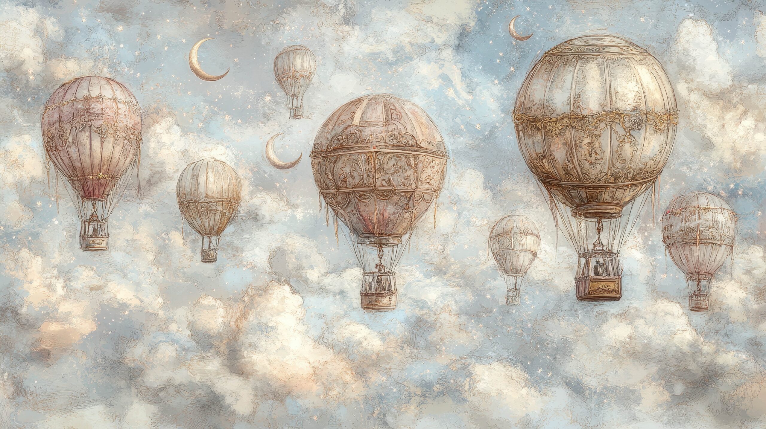 Fototapeta „Balonowy lot w chmurach” to wyjątkowa dekoracja ścienna, która przenosi do wnętrza uczucie swobody, lekkości i marzycielskiej przygody. Kompozycja przedstawia unoszące się balony wśród miękkich, puszystych chmur, delikatnie rozświetlonych promieniami tęczy. Lekkość i pastelowa paleta barw tworzy uspokajające, nastrojowe tło – idealne pokoju dziecięcego. Ta fototapeta to propozycja dla osób ceniących estetyczny minimalizm połączony z oddechem wolności — wnosi do wnętrza aurę optymizmu, przestrzeni i marzycielskiego klimatu.