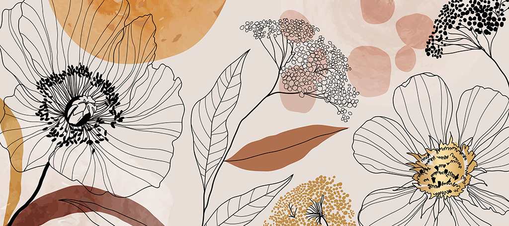 Ta fototapeta to połączenie nowoczesnej grafiki z naturalnym motywem kwiatowym. Delikatne kontury kwiatów na jasnym tle wprowadzają do wnętrza spokój i harmonię, nadając mu jednocześnie lekkości i subtelnej elegancji.