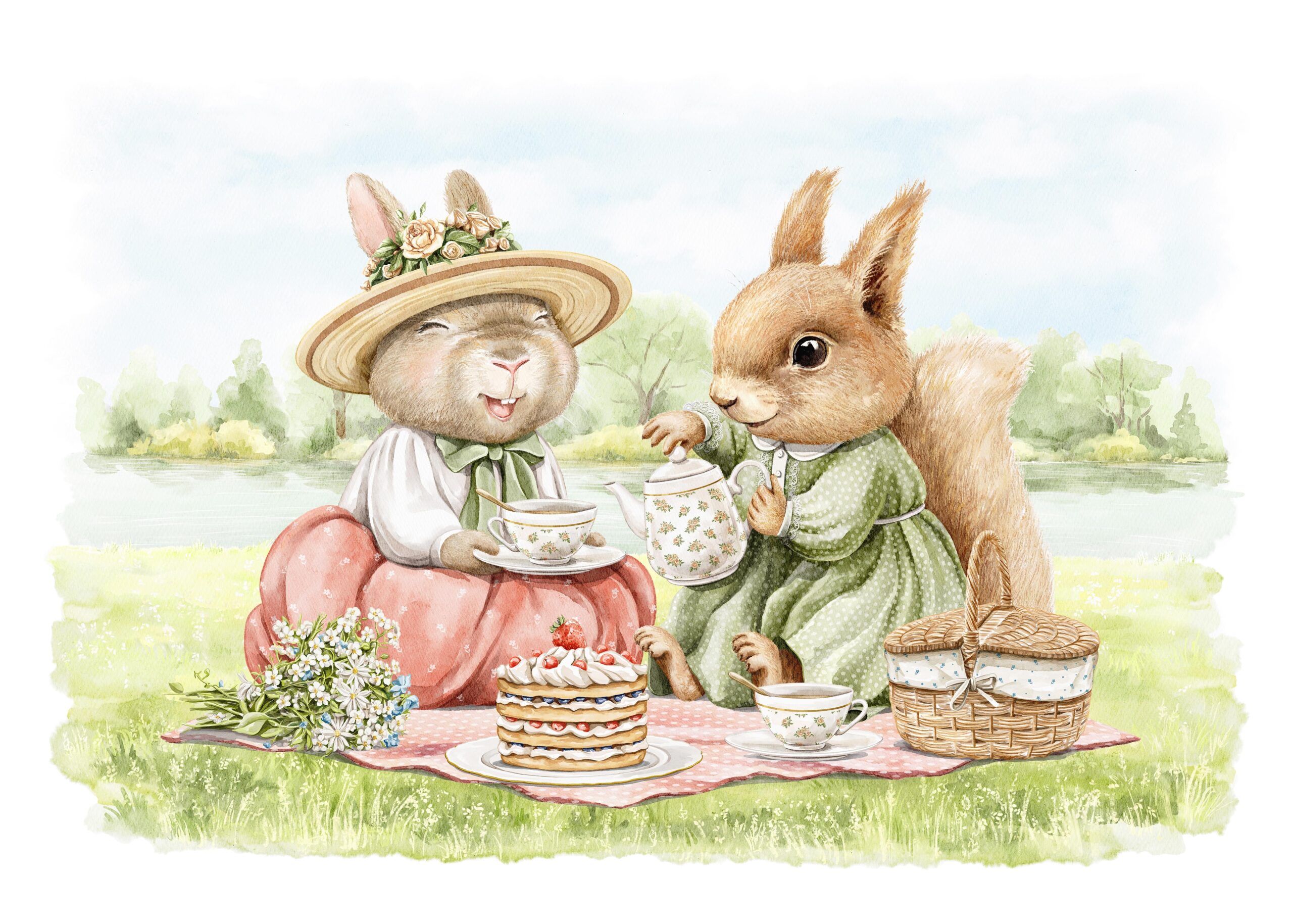 Zamień pokój swojego dziecka w urokliwy zakątek pełen przygód i leśnej magii dzięki fototapecie „Leśna Przygoda Przyjaciół”. Ta subtelna, ręcznie ilustrowana scena przedstawia sympatyczne zwierzątka – misia w hamaku, grające w piłkę króliczki, ciekawskiego liska i wesołego jeżyka – które wspólnie spędzają czas w bajkowym lesie.