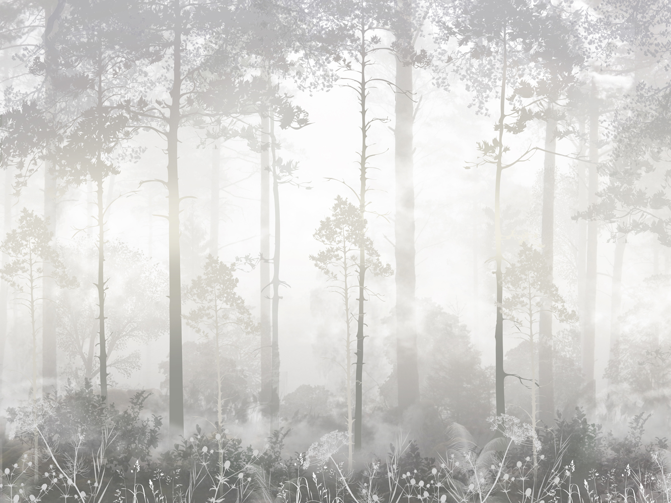 Natura w Twoim wnętrzu: realistyczna grafika lasu we mgle dodaje przestrzeni głębi i wyrafinowanego charakteru.
