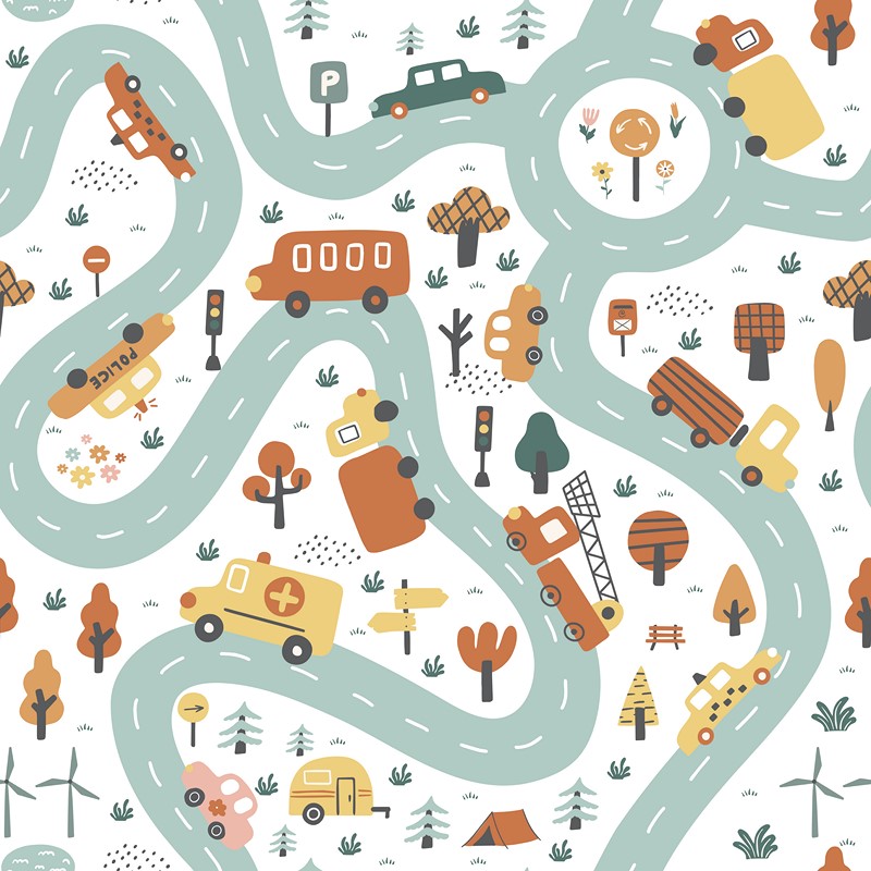 Fototapeta „Miasto na kółkach” to dynamiczna i kreatywna dekoracja ścienna, która wnosi do wnętrza energię miejskiego życia i nowoczesny design. Motyw poruszających się ciężarówek i samochodów łączy elementy geometrii z symboliką ruchu – tworząc efekt żywej, pulsującej kompozycji. Idealna do pokoju dziecka czy przestrzeni kreatywnej – tapeta ożywia wnętrze i dodaje mu unikalnego charakteru. „Miasto na kółkach” to propozycja dla dzieci kochających motoryzację, zabawy samochodzikami, ale także zasady ruchu ulicznego!